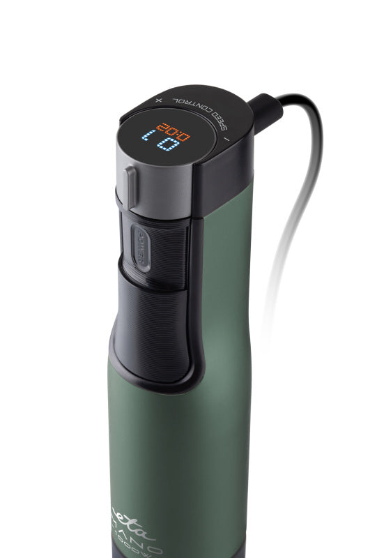 Der Mixer ETA Mano ist mit einem modernen LCD-Display ausgestattet, das Ihnen die aktuelle Geschwindigkeit und Betriebsdauer anzeigt. So haben Sie bei der Arbeit einen perfekten Überblick und können alles leicht nach Ihren Bedürfnissen anpassen. Dieses clevere Detail hebt Ihr Kocherlebnis auf ein neues Niveau!