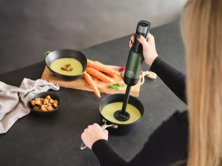 Der multifunktionale Stabmixer ETA Mano ist ein absolutes Muss in jeder modernen Küche. Ob Sie geschmeidige Soßen, dicke Suppen, frische Dips, erfrischende Smoothies oder fluffigen Eiweiß-Schnee zubereiten möchten, der ETA Mano Mixer wird immer zur Hand sein.
