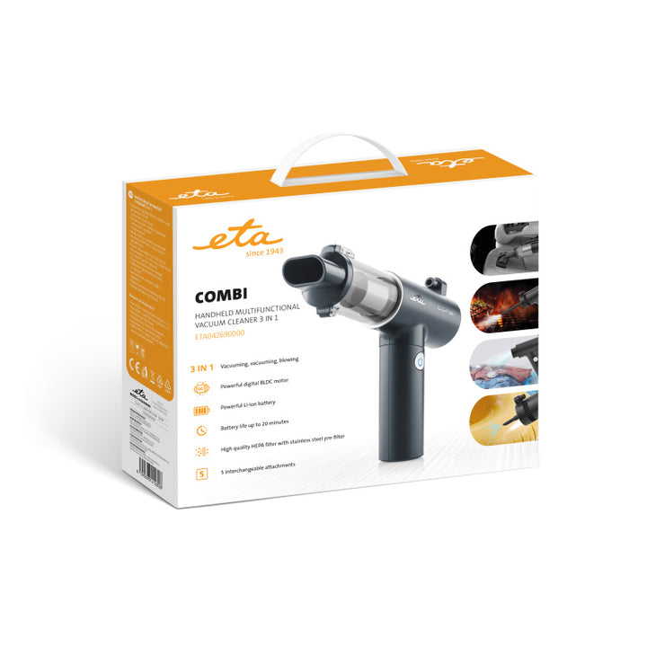 Der Handstaubsauger ETA Combi ist klein, leicht, einfach zu verstauen und liegt mit seinem drehbaren ergonomischen Griff perfekt in der Hand. Zwei Saugleistungsstufen und eine Laufzeit von bis zu 20 Minuten geben Ihnen Kontrolle und Flexibilität, während der hochwertige HEPA-Filter mit Edelstahl-Vorfilter für saubere Luft während des Reinigens sorgt.