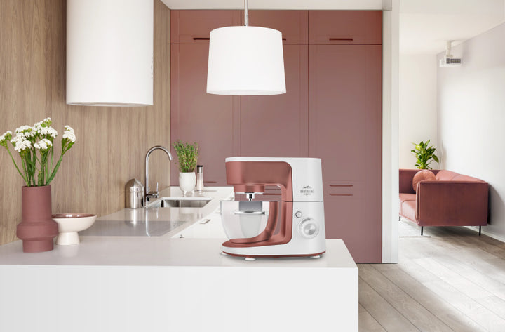 Dank stufenloser Drehzahlregelung, Leistungsstabilisator und der PULSE Funktion behalten Sie bei jedem Rezept die volle Kontrolle. Nicht fehlen darf die integrierte Beleuchtung der Rührschüssel und der praktische FitForOne Schneebesen – für perfekte Ergebnisse auch bei der Verarbeitung kleinerer Mengen.
