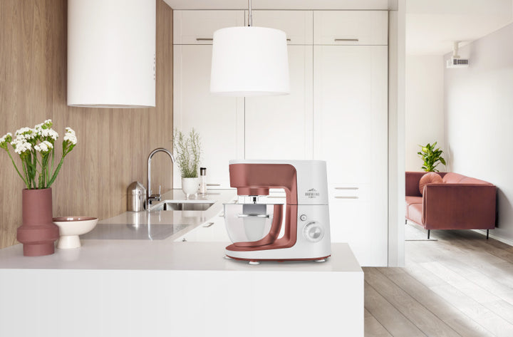 Die ETA Gratussino III Elements ist eine Küchenmaschine aus der stilvollen „Elements“-Edition, welche jeder Küche eine persönliche Note verleiht. Wie die Handmixer ETA Lento Elements derselben Reihe erscheint auch der Gratussino III in drei elementaren Farben – terra (Erde), sole (Sonne) und luna (Mond) – inspiriert von den grundlegenden Elementen unseres Lebens. Sie vereint zeitloses Design, Zuverlässigkeit und Ausstattung, die Sie selbst bei anspruchsvolleren Kochprojekten nicht enttäuscht.